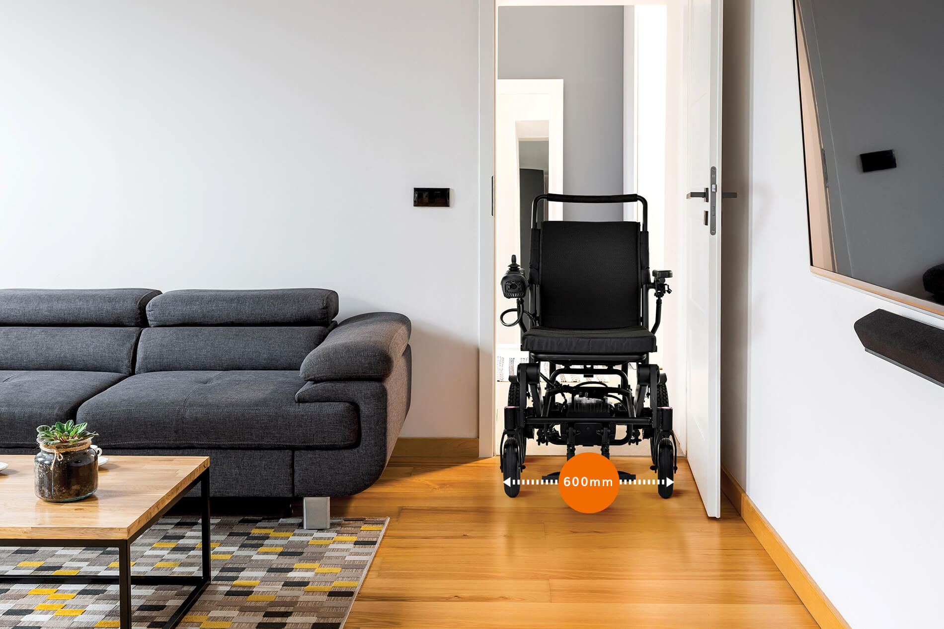 Der Q50R wird ihnen auch in vielen Situationen den Alltag erleichtern, ob zu Hause, in belebten Einkaufszentren oder beim Reisen mit öffentlichen Verkehrsmitteln. Die kompakte Größe des Q50 R und die einfache Bedienung – dank des intuitiven Joysticks, der sehr präzise auf Joystick-Bewegungen reagiert – ermöglicht es Ihnen, sich in jeder Situation problemlos zu bewegen, auch wenn der Platz knapp ist. Im Gegensatz zu einem Scooter hat der Q50 R einen kleinen Wendekreis von 1220 mm, was ihn ideal für Innenräume macht. Wenden Sie mühelos in engen Gängen, Küchen und anderen beengten Räumen, ohne komplizierte Manöver durchführen zu müssen.