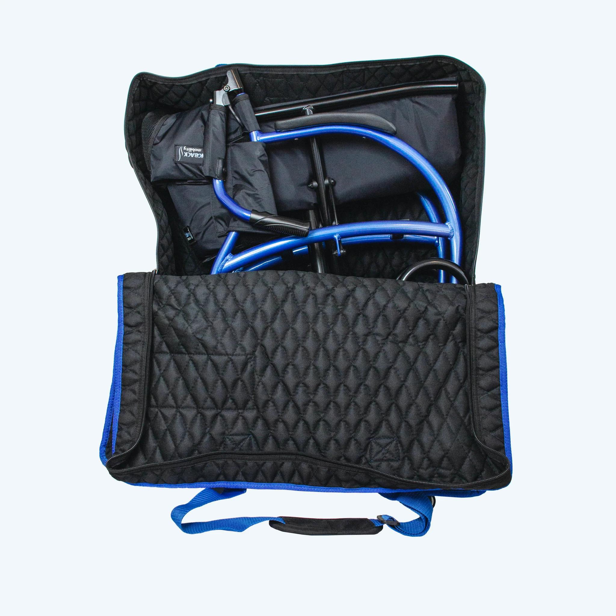 - Optional bietet Strongback Mobility eine passende Reisetasche mit Rollen mit einem Maß von 78 x 31 x 78 cm zum sicheren Verstauen und Transportieren des Rollstuhls an.