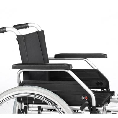Optional ist der B+B Standard Rollstuhl S-Eco 300 mit Trommelbremse für die Begleitperson lieferbar. Diese befindet sich an den Schiebegriffen, ist aufgebaut wie eine Fahrradbremse, damit Sie auch im abschüssigen Gelände das Schiebetempo regulieren können. Wird er bei abschüssigen Wegen zu "schnell" dann hilft Ihnen die Trommelbremse das Tempo durch Abbremsen der schiebenden Begleitperson zu halten.