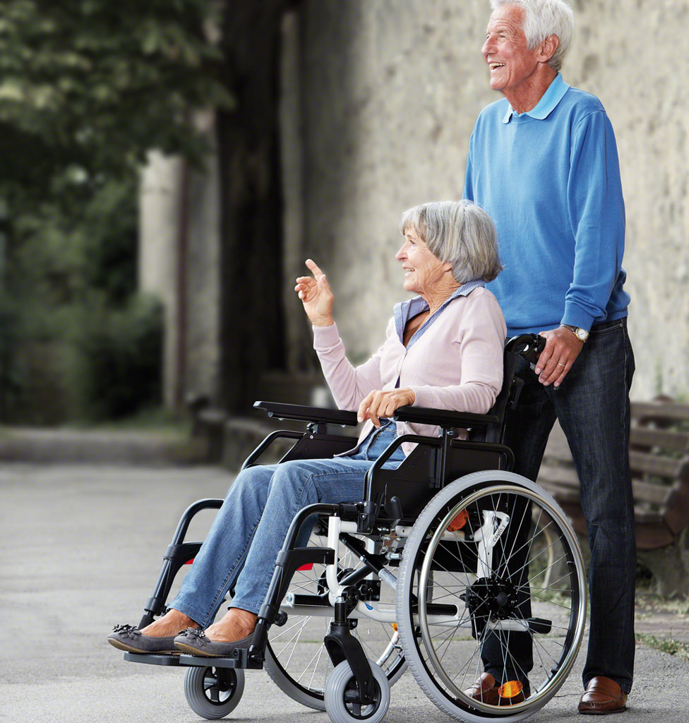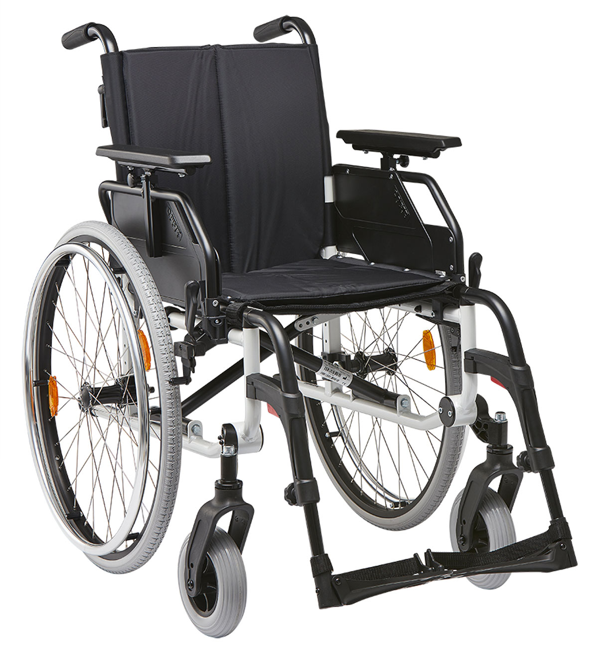 - Mit seiner angepassten Sitztiefe von 47/51 cm und einer Rückenhöhe von 46 cm verfügt er mit einem Gewicht ab 18,7 kg und dem Gesamtmaß (B × H × L) von 655 - 715 × 960-1005 × 1130-1200 mm in den anderen Punkten über den gleichen Komfort wie der Leichtgewichtrollstuhl Caneo S.