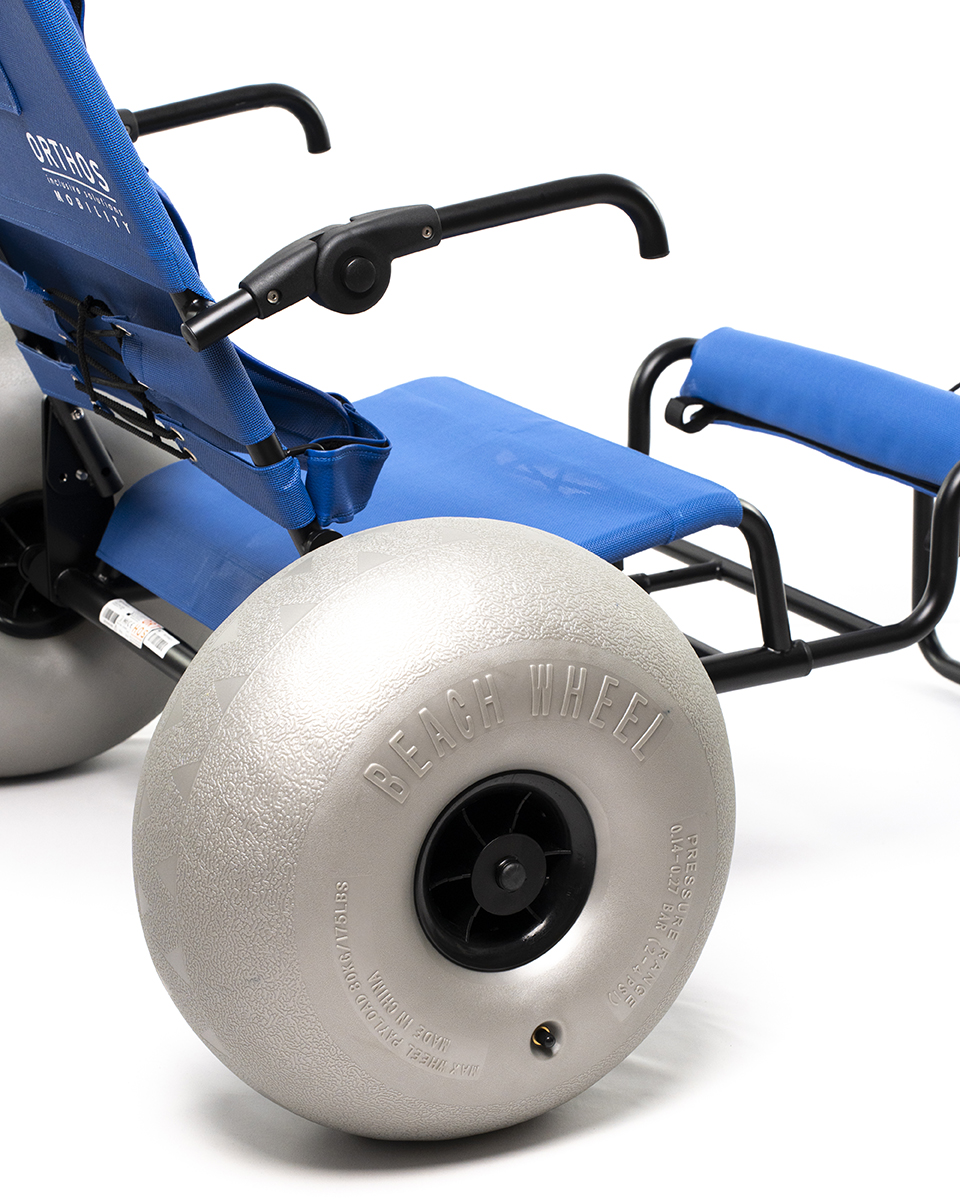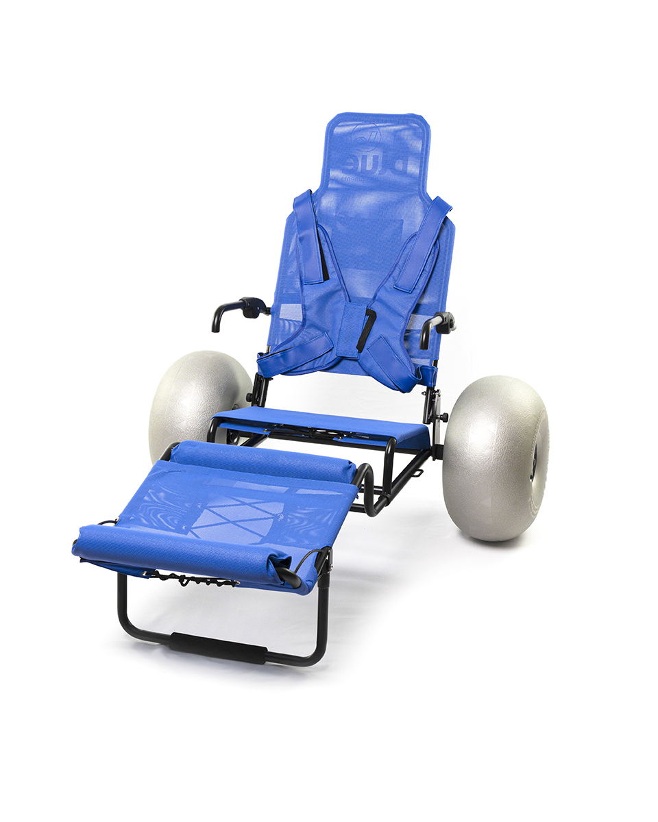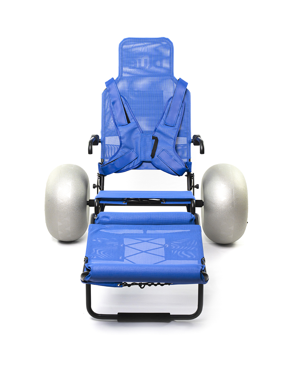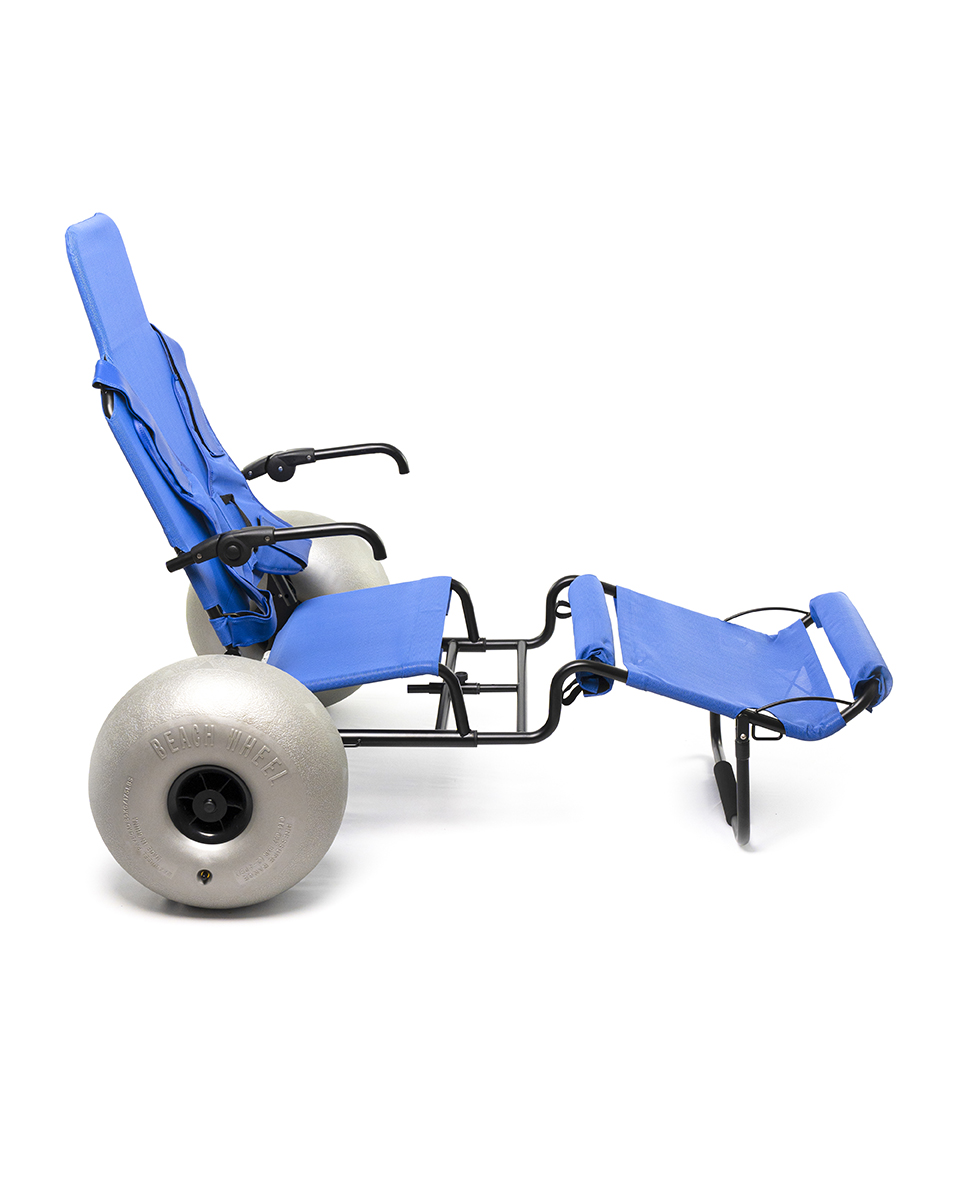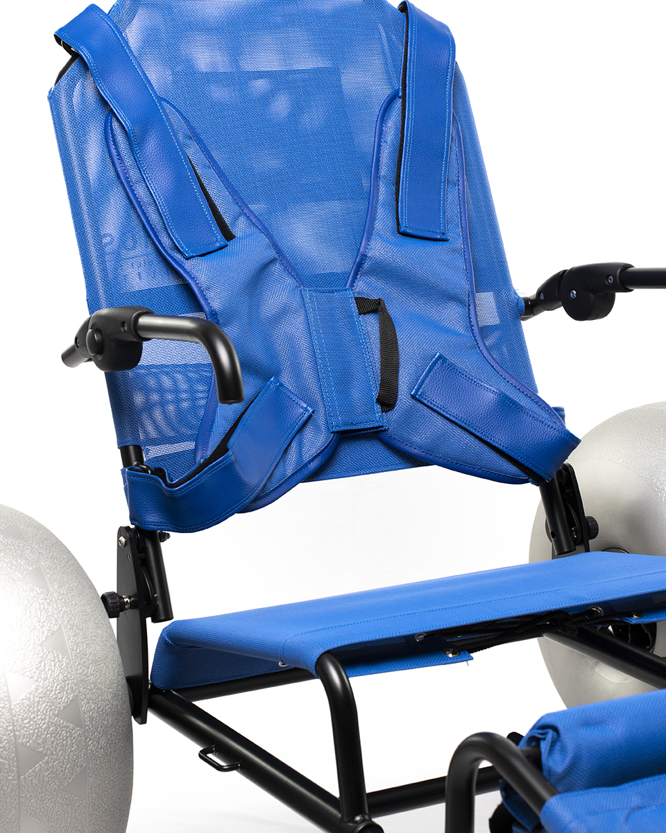 Am Strand überzeugt der BLUE-Wasserrollstuhl durch seine durchdachte Funktionalität und einfache Handhabung. Dank der verstellbaren Rückenlehne, der bequemen Armlehnen und der einfach zu montierenden Konstruktion erleben Sie höchsten Sitzkomfort. Die speziell entwickelten Ballonräder ermöglichen eine mühelose Fortbewegung auf unterschiedlichsten Untergründen und die stabile Konstruktion sorgt jederzeit für Ihre Sicherheit. Lassen Sie sich von der Qualität und Funktionalität des Strandrollstuhls BLUE begeistern und machen Sie jeden Tag am Strand zu einem besonderen Erlebnis.