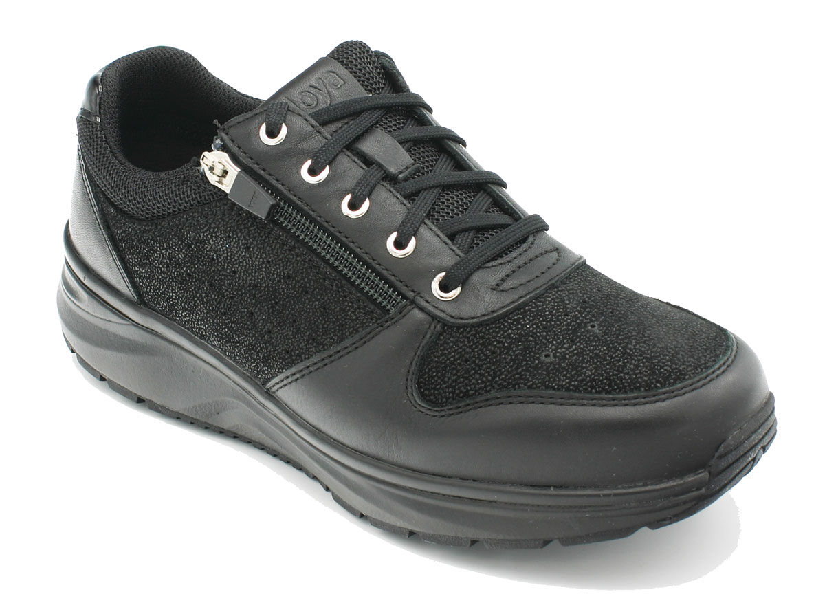 - Die weiche Joya Active Sohle der Damen Schuhe Joya Dynamo Zip black III erfüllt alle Anforderungen an einen sportlichen Freizeitschuh in bequemer Weite und bietet aufgrund der flachen, Stoß absorbierenden, weichen Sohlen einen stabilen Halt. Die neue Joya Active Sohlentechnologie eignet sich für alle, die sich gern bewegen und komfortable, bequeme Schuhe bevorzugen. Joya Active Sohlen ermöglichen gesundes, schmerzfreies Gehen aufgrund der verbesserten Stabilität des breiten Vorfußes und der Ferse.