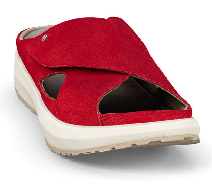 Offene Joya Alicante Red Damen Komfortschuhe sind weiche und geschmeidige Veloursleder-Slipper-Sandalen mit breitem verstellbarem Klettverschluss und konturierbarer herausnehmbarer Innensohle für den Innen- und Außenbereich. Ob draußen in der warmen Jahreszeit oder zu Hause als offene Hausschuhe bieten Ihnen die Gesundheitsschuhe mit der Joya Senso Sohlentechnologie eine hervorragende Dämpfung und eine ausgewogene Druckverteilung für Ihre Füße. Damen Schuhe Joya Alicante red sorgen für optimalen Komfort und Entlastung Ihrer Rückenmuskulatur, der Gelenke und Ihrer beanspruchten Füße.
