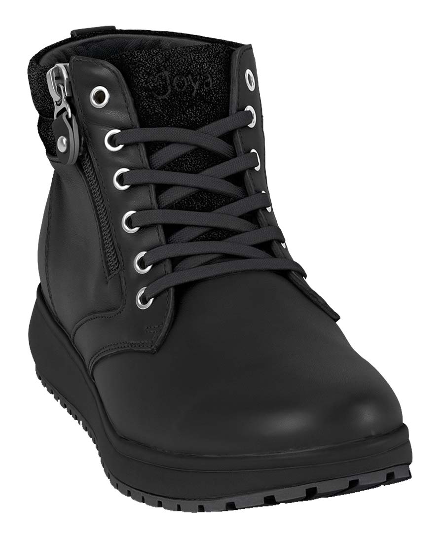 Die bequemen Damen Schuhe Joya Wilma II Black sind Midcut-Stiefel mit aktiv gehenden Senso Sohlen und seitlichem Zipp-Reißverschluss, der Ihnen nach der ersten Schnürung das An- und Ausziehen der weichen Komfortschuhe erleichtert, heißt das für Sie: Einmal richtig passgerecht schnüren, um zukünftig über den geöffneten Reißverschluss bequem in Ihre Joya Komfortschuhe hineinzuschlüpfen.