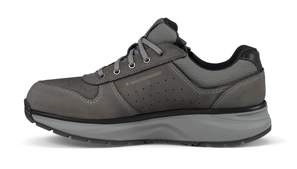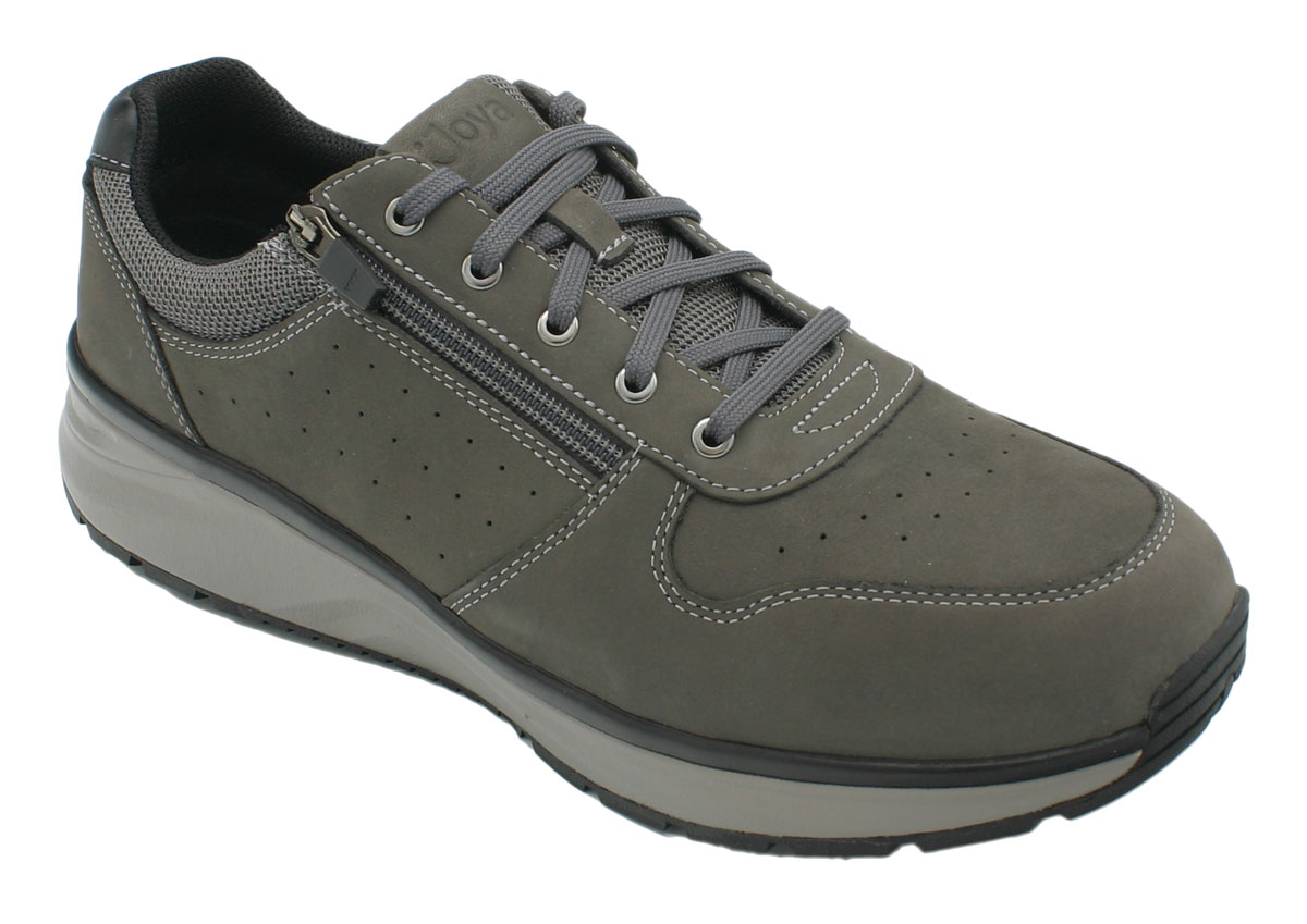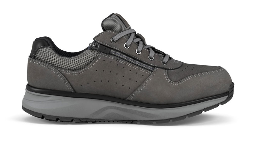 Die weich auftretenden Herren Schuhe Joya Dynamo Zip Dark Grey aus anschmiegsamen grauen Nubukleder lassen Ihre Gelenke an lauffreudigen Tagen gedämpft entspannt unterwegs sein, entlasten Ihren Rücken und schonen die Füße. Die sportlichen Gesundheitsschuhe mit bequem, weicher Joya Active Sohle lassen Sie aufrecht gehen und bringen Sie angenehm auf weich, federnden elastischen Sohlen durch den Alltag. Mit jedem Schritt dämpfen Joya Schuhe Ihre Schritte auf harten, unebenen Böden und schonen somit Kniegelenke und Füße. Das weiche Abrollen stärkt den Rücken beim aufrechten Gang.