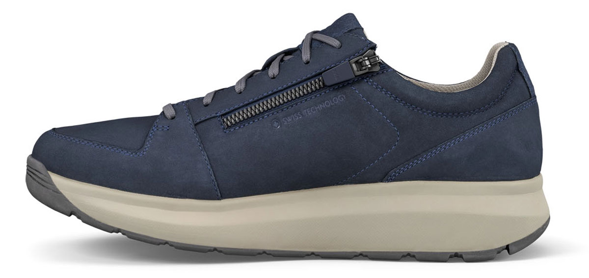 Bequeme Herren Schuhe Joya Oliver Dark Blue aus anschmiegsamem Nubukleder und seitlichem Zip-Reißverschluss bieten mit der Schweizer Joya Senso-Sohlen Technologie einzigartigen Gehkomfort auf weichem Sohlen. Für den leichten Einstieg nach der ersten Schnürung sorgt der seitliche Zip. Sportliches blaues Nubuk kombiniert mit einem atmungsaktiven Mesh-Futter bietet Ihren empfindlichen Füßen entspannten Halt. Joya Oliver Dark Blue Komfortschuhe für Männer sind elegant, leger und zu jedem Anlass tragbar. Ausgerüstet mit aktiv gehenden Joya Senso Sohlen mit Mittelfußstütze, erleben Sie mit jedem Schritt eine hervorragende Dämpfung und ausgewogene Druckverteilung. Joya Oliver Gesundheitsschuhe bieten Ihnen den optimalen Komfort und Entlastung für verspannte Rückenmuskulatur, beanspruchte Gelenke und Füße.