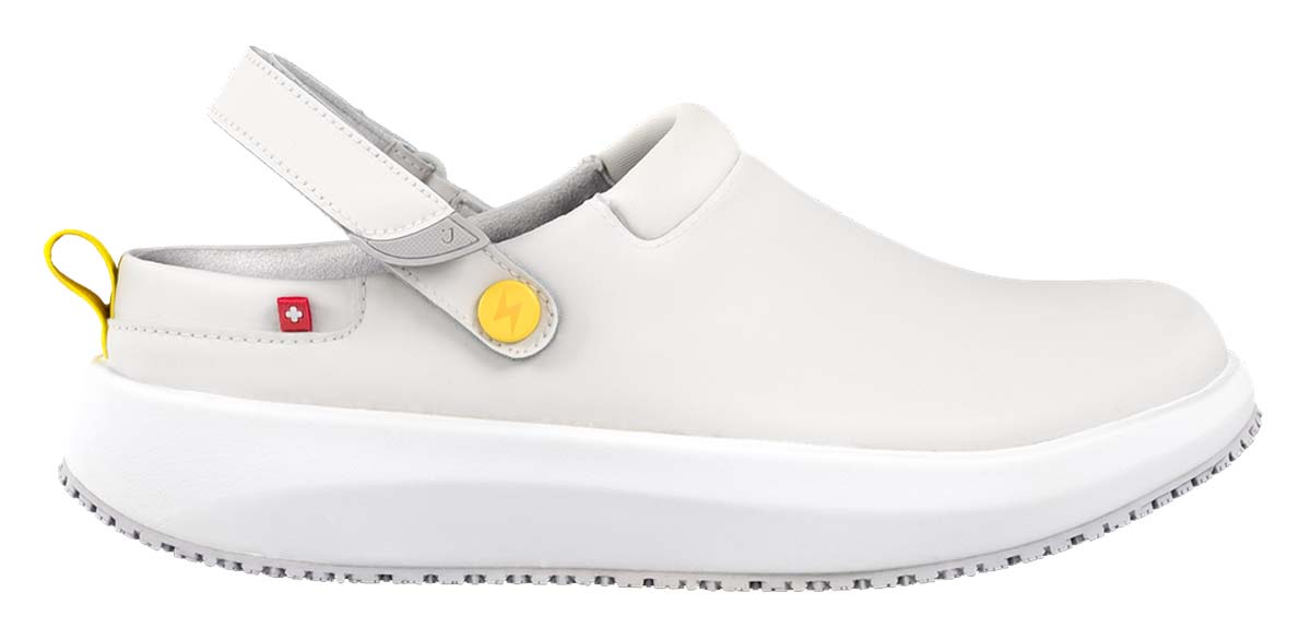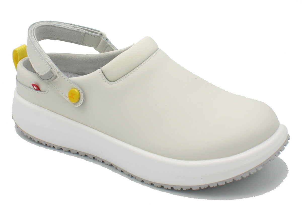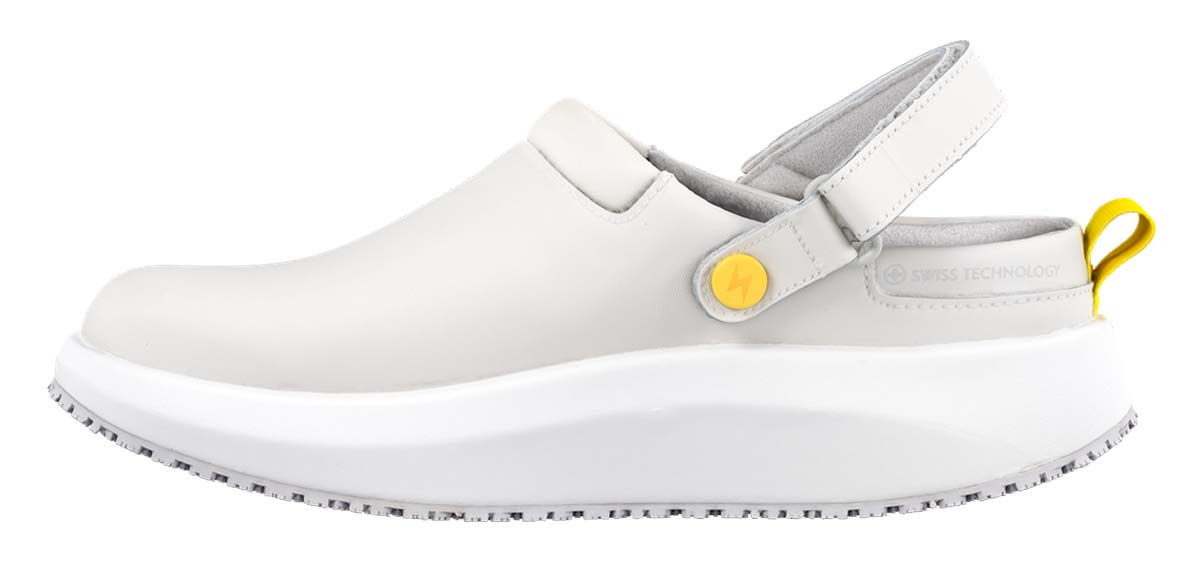 Die weich gedämpften Herren Schuhe Joya ACE ESD M White sind Clogs für Herren mit sicherndem Fersenriemen für gesundes Gehen im Arbeitsalltag. Denn bequeme Joya Gesundheitsschuhe für Herren bieten Ihnen aufgrund der patentierten Joya Senso Sohlen optimale Druckverteilung mit hervorragender Dämpfung für Ihre gestressten Füße. Verbringen Sie viel Zeit während einer sitzenden Tätigkeit, richten Joya Schuhe mit Senso Sohlen Sie wieder auf und entspannen Ihre Rückenmuskulatur. Die Berufsschuhe Joya ACE ESD sind mit TÜV-Süd geprüften antistatischen ESD-Sohlen für den medizinischen Bereich ausgerüstet.