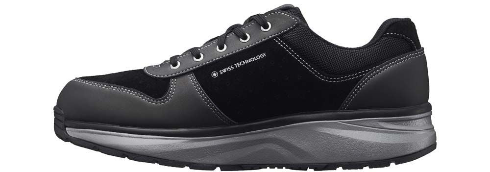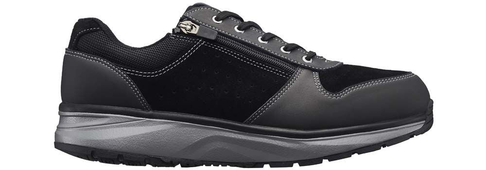 Mit elastischen Active-Sohlen von Joya wird Ihnen besonders auf unebenen und harten Untergründen wie z.B. Kopfsteinpflaster ein besonders weich, stoß gedämpfter Auftritt zugesichert. Sportlich aktiv sein und Ihre Gelenke schonen sowie den Rücken entlasten ist bei Aktivität, ob in der Freizeit oder im Beruf beim Gehen und Stehen besonders wichtig. Hierbei sind Ihnen die bequemen Komfortschuhe für Herren Joya Dynamo Zip M Black II behilflich. Ausgestattet mit der Joya Active-Sohlen-Technologie, die Ihrem Körper eine ideale Kombination aus Dämpfung, Rückfederung und Stabilität garantiert.