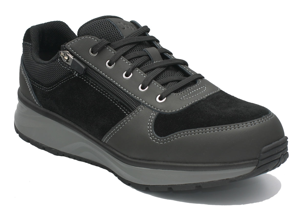 Weich gedämpfte Herren Schuhe Joya Dynamo Zip M Black II in bequeme Weite H entlasten mit elastischen Active-Sohlen Ihre Gelenke und entspannen den Rücken bei allen Aktivitäten. Das besonders weiche Auftreten mit den bequemen Joya Gesundheitsschuhen für Männer bietet Ihnen das entspannte Laufgefühl eines Spazierganges am sandigen Meeresufer mit guter Fersenstabilität und entlastet schmerzende Füße. Modisch schwarze Schnürschuhe für Herren sind mit zusätzlichem Reißverschluss für einen leichten Einstieg ausgestattet. Einmal richtig geschnürt, können Sie zukünftig Ihre Joya Schuhe Dynamo Zip M Black II mit seitlichem Zip leicht und zügig an- und ausziehen.