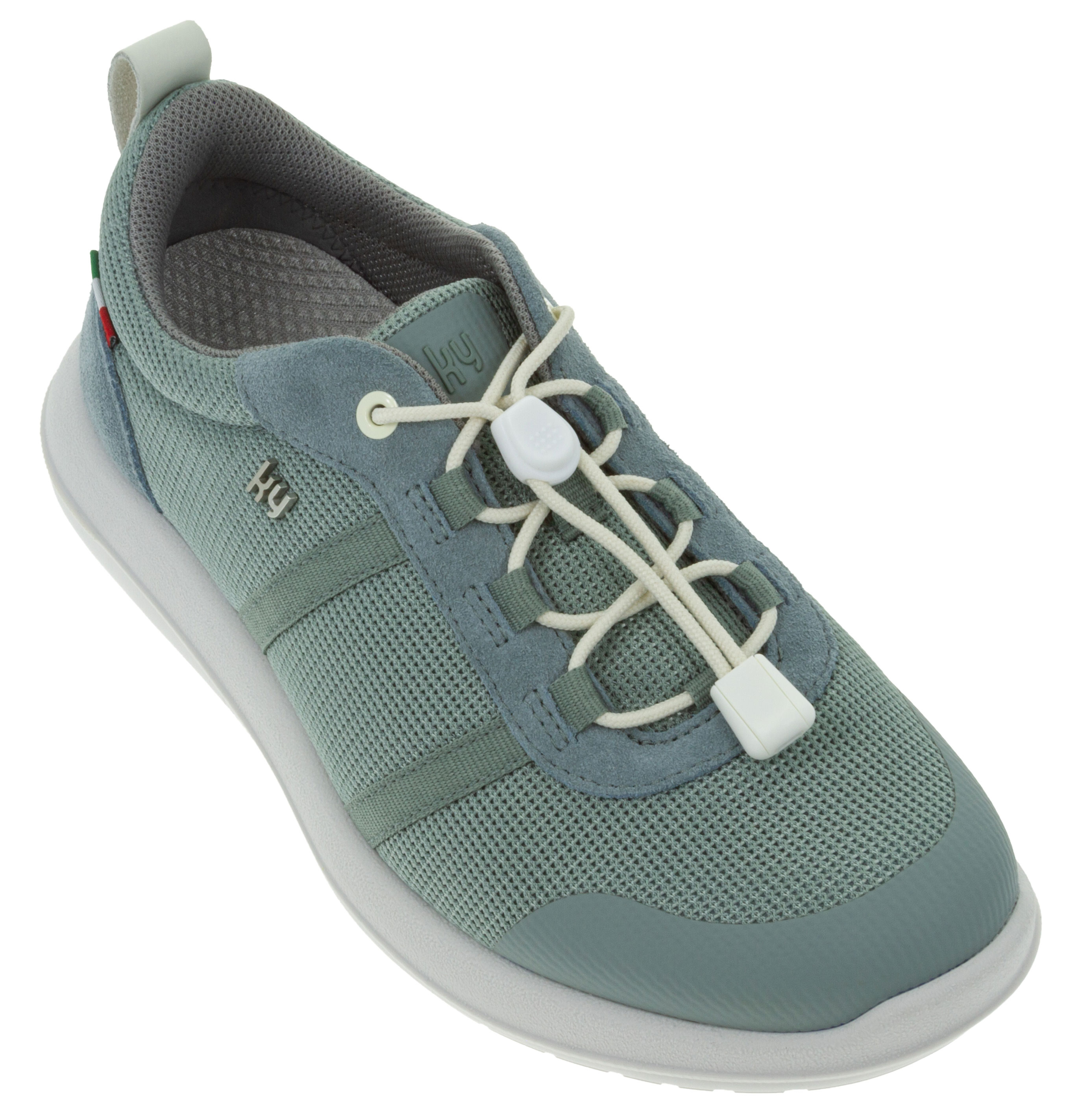 Die leicht reduzierte Intensität und Wirkung der Kybun Tropen Luftkissensohlen mit ihrem "kybun-light"-Gefühl sind ideal für Nutzer mit Schwächen in der Muskulatur oder Gleichgewichtsstörungen als auch für alle Bewegungsbegeisterten, die Ihre empfindlichen Füße mit Kybun Damen Schuhen bei sportlichen Aktivitäten entlasten möchten. Perfekt für Sportarten wie Tennis, Volleyball, Joggen usw., bei denen es weniger um das Gewinnen als vielmehr um schmerzfreie Bewegung geht. Aufgrund der geringeren Höhe verfügen die Kybun Damenschuhe Langnau Green mit Tropo Sohlen über keine Luftzylinder.