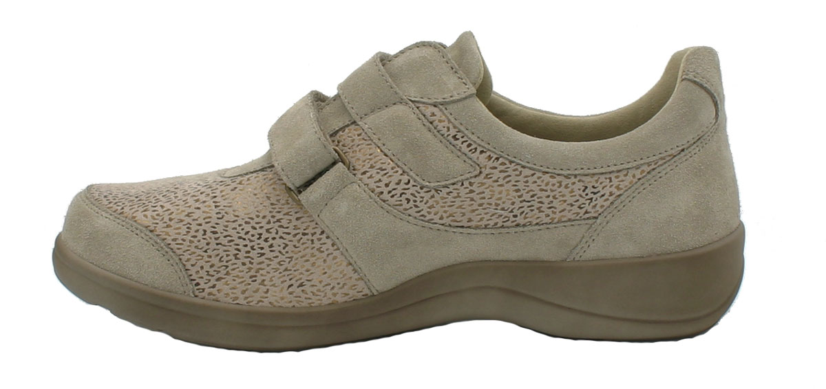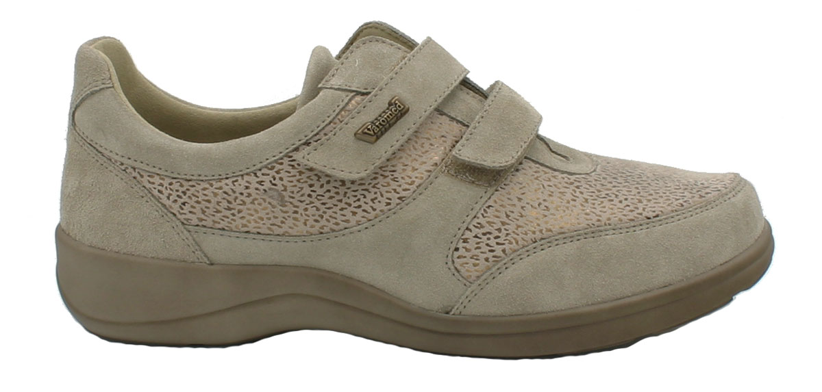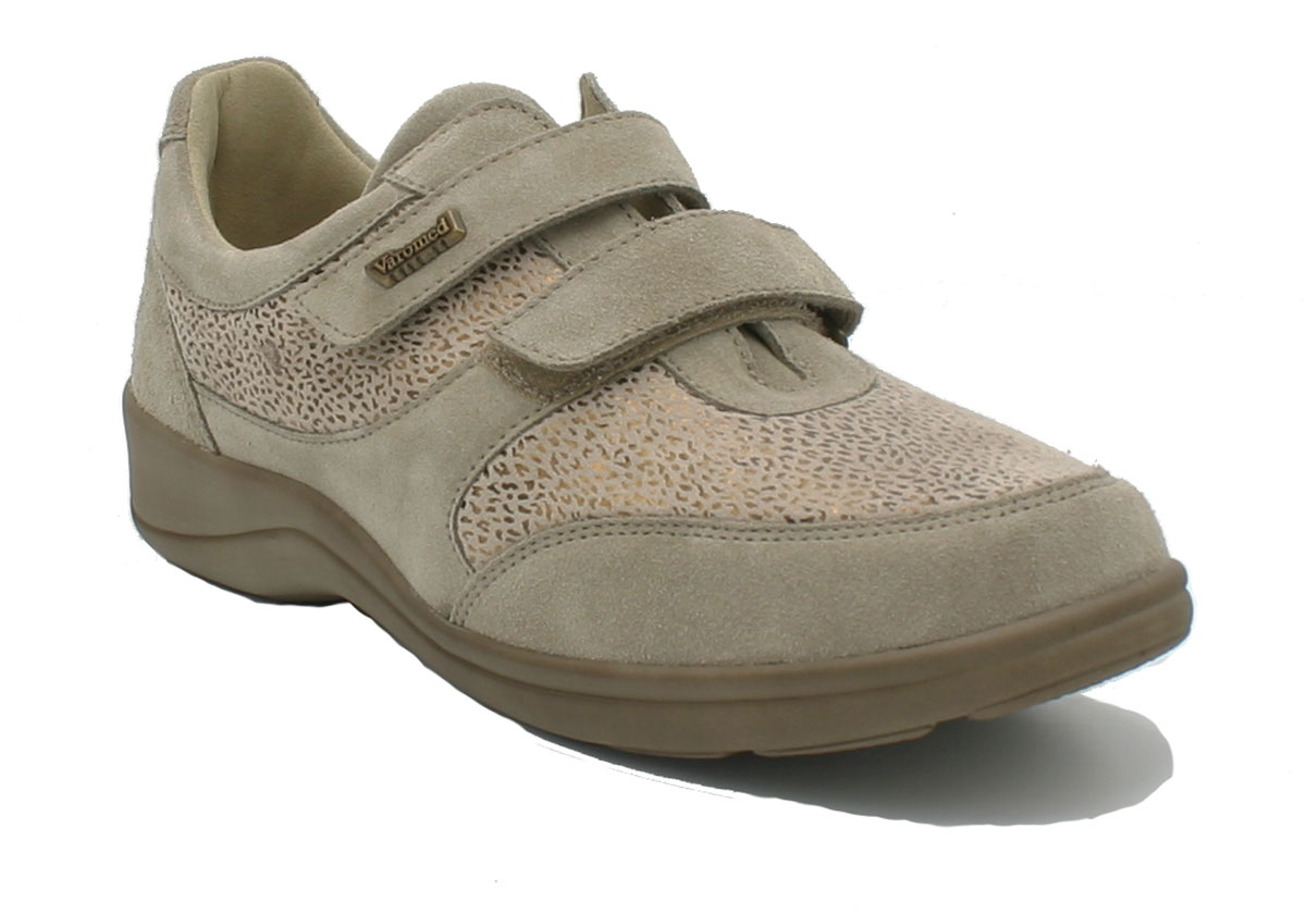 Der Damen Schuhe Varomed Madrid Kiesel in der leichten Überweite H 1/2 sind Gesundheitsschuhe für sensible, schmerzende Füße aus weichem Leder und bieten dank der 2 Klettverschlüsse eine optimale Weitenregulierung. Das Vorderblatt aus Stretch sorgt für eine perfekte Anpassung an Ihren Vorfuß. Mit seiner angepassten Vorfußweite in H 1/2 ist der Varomed Damenschuh hilfreich auch bei ausgeprägtem Hallux Valgus. Varomed Gesundheitsschuhe sind im Innenbereich weitgehends ohne störende Nähte und extra weich gearbeitet und für Diabeteker geeignet. Er schmiegt sich angenehm an Ihren Fuß. Die Schuheinlagen ist wechselbar und er bietet Platz für Ihre individuell angefertigten Schuheinlagen.