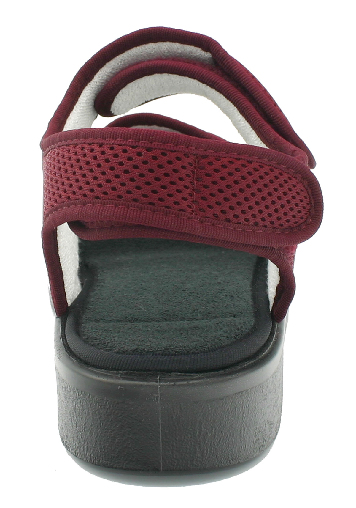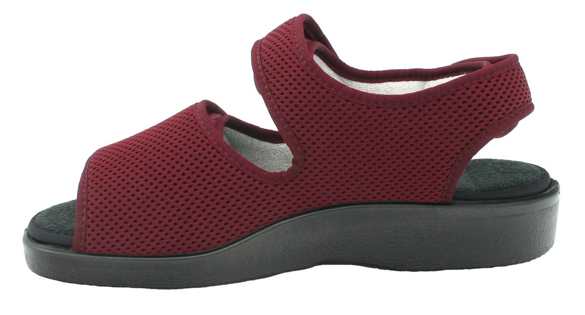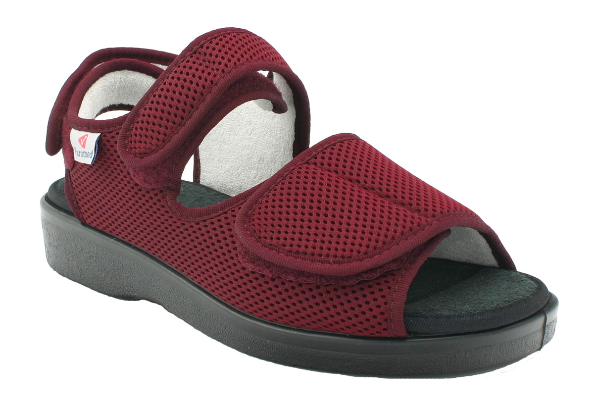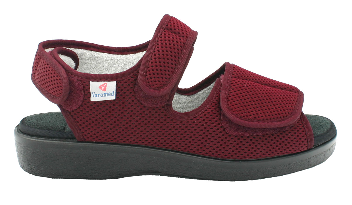 Die luftig, weichen Verbandsandalen Varomed Genf bordeaux in Weite L sind Gesundheitsschuhe aus atmungsaktivem, luftigen Mesh-Obermaterial und mit hygienischem Frottee-Futter, können über 3 Klettverschlüsse individuell am Fuß befestigt und komplett weit geöffnet werden. Varomed Verbandschuhe aus weichem Mesh einem maschenartigen Material, das besonders anpassungsfähig, weich und luftdurchlässig ist. Damit sorgt es für einen angenehmen Temperaturausgleich bei heißen Füßen.